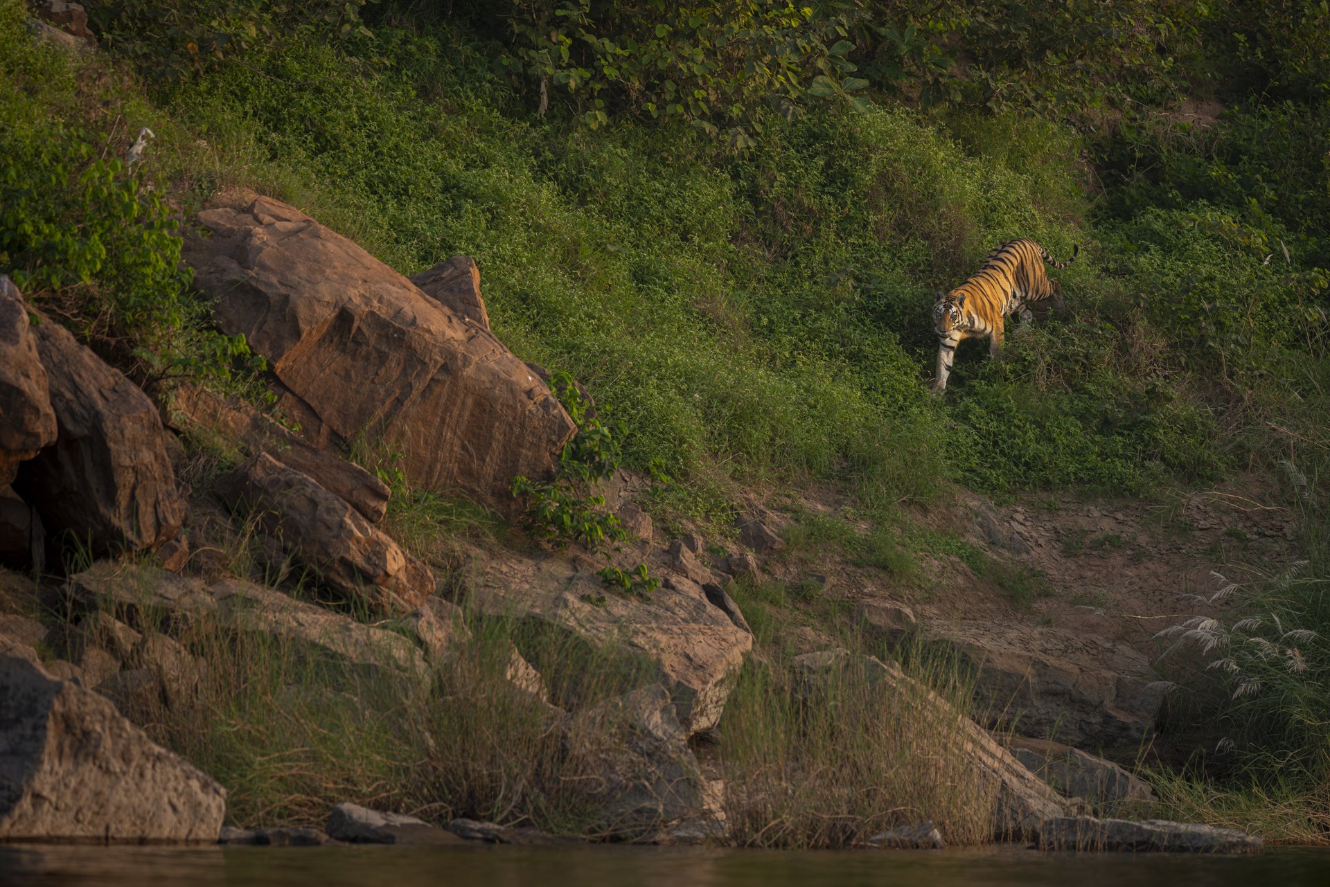 We left our position and headed for the boat mooring on the River Ken, hoping for one last chance to spot a tiger along the water’s edge. Luck was on our side.